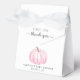 Cute baby girl shower party favour box featuring "thank you" in simple grey typography and a stylish script with swashes and a pink pumpkin watercolor.