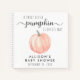 Cute gender-neutral baby shower guest book featuring a pastel orange watercolor of a pumpkin and "A Sweet Little Pumpkin Is On Its Way" written in a mix of soft grey typography and a stylish script with swashes. Specify the baby’s gender if desired (e.g., "is on his way").