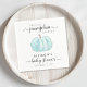 Cute baby boy shower napkins featuring "A Sweet Little Pumpkin Is On His Way" written in simple grey typography and stylish script with swashes, and a cute pastel blue watercolor of a pumpkin.