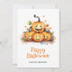 Cute watercolor Halloween card featuring funny pumpkins and ghosts. Easily personalise this Halloween card with your family name and text.