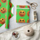 Cute orange pumpkins on a bright green background pattern wrapping paper design would be perfect for a Halloween party or gift. Chose from several different lengths and styles.