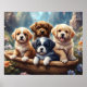 This poster features cute puppies in a basket on a flower meadow. The perfect motif for all dog lovers and children! Lovely kid's room decor.
