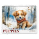 Cute Puppies Watercolor Art 12-Month 2025 Calendar