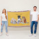 This customisable dog blanket has three original cute puppy portrait pictures in the middle of it, the three little pups are a shar pie puppy, a black and white akita puppy and a very sweet little brown mixed breed puppy, each puppy has his own colourful teddy bear and stuffed toy, some of the toys have been shredded and the puppy has a very sorry expression on his face, or is he saying "it wasn't me!" All of the puppies are painted in watercolor. The customisable slogan "Puppies Rule" is printed on the top of the blanket, but his is a customisable throw blanket and you can personalizewith your own text.