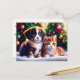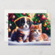 Cute puppy and cat under Christmas tree Holiday Postcard