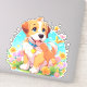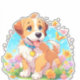 A sticker with a picture of a cute puppy sitting amongst the flowers. He looks very happy to be surrounded by flowers and butterflies.The perfect gift to give those who love puppy dogs. Contains generative content.
