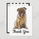 Cute Puppy Dog Black White Cartoon Pug Thank You Postcard