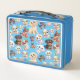 A cute Puppy Dog pattern design with watercolor illustrations of different dog breeds such as , Dalmatian, German Shepherd, Bulldog, Pug, Poodle, Spaniel. With a blue background. Just add an initial for a monogrammed gift to make a great lunch box for dog lovers and students.