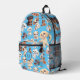A cute Puppy Dog pattern design with watercolor illustrations of different dog breeds such as , Dalmatian, German Shepherd, Bulldog, Pug, Poodle, Spaniel. With a blue background. Just add an initial for a monogrammed gift to make a great fun backpack for dog lovers and students.