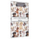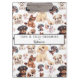 A cute Puppy Dog pattern design clip board with watercolor illustrations of different dog breeds such as , Dalmatian, German Shepherd, Bulldog, Pug, Poodle, Spaniel. A great business binder for all working in a animal profession such as pet groomers, pet salons, pet stores, veterinary (vets) , dog trainers, doggy day care , animal shelter, animal Hospital and clinics as well as pet sitters. Would also be great for a dog or cat lover just add the names of the pets . Background colour can be amended if needed.