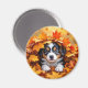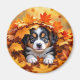 A cute puppy dog Autumn themed magnet. A sweet little puppy dog playing in a pile of Autumn leaves. He's peeking out adorably as he hides in the pile of leaves.