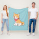 Cute Puppy Dog Shiba Inu on Blue Fleece Blanket