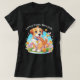 A women's t-shirt with a picture of a cute puppy sitting amongst the flowers. He looks very happy to be surrounded by flowers and butterflies.The perfect gift to give those who love puppy dogs. The slogan is 'Little paws, Big love'. Contains generative content.