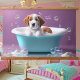 Super cute puppy in a bathtub with lots of soap bubbles - fun and cute motif for children! Sweet wall tapestry for children's room and more - designed with AI. Customisable!