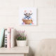 An adorable fluffy puppy sitting in a basket wearing a cute blue outfit. A soft and charming design perfect for dog lovers and kawaii fans.