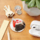 A keychain with an adorable photo of a pug puppy sleeping while wearing a red santa hat. Merry Christmas is written on the band of his hat, in a trendy handwritten font, in the festive colours red and green. Christmas lights strung across the top creates additional seasonal holiday flair.
