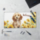 Cute Puppy Sunflowers Watercolor Desk Mat