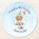 Cute Puppy with Party Hat Birthday Round Paper Coaster