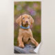Cute puppyeyed Hungarian Vizsla Dog Puppy Photo . Beach Towel