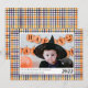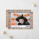 Cute Purple and Orange Gingham Plaid Halloween Photo Card