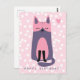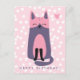NewParkLane - Cute Kids' Birthday Postcard, featuring a sweet pink and purple cat cartoon, against a pink background with white polkadots.