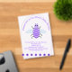 This awesome acrylic Baby Shower invitation features a graphic image of a cute purple baby bee with black legs and beady eyes. He has a lavender coloured fuzzy body with purple stripes and cute purple antennae on his fuzzy head. His delicate little wings have a pale blue mottled pattern on them.