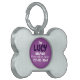 Cute Purple Bone Shaped Pet ID Tag is modern fun designed with a customisable lavender purple background. The text includes your dog's name, phone number and "help me." EASY FILL IN TEMPLATE FOR YOUR PET'S INFORMATION AS YOU PLACE YOUR ORDER.