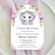 Cute Purple Bow Floral Elephant Arch Baby Shower Invitation