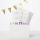 Cute bow theme birthday party favour bag featuring hand drawn illustration of purple ribbons.
