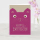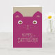 Cute, funny purple cat illustration with tan background and charming "Happy Birthday" text.