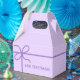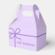 Custom purple favour boxes. Purple ribbon design. Edit name to personalised.