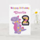 Celebrate a special 2nd birthday with the adorable, bright and colourful dinosaur birthday. Personalise the name to create the perfect card.
