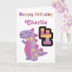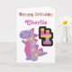 Celebrate a special 4th birthday with the adorable, bright and colourful dinosaur birthday. Personalise the name to create the perfect card.