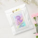 This design features dinosaur in purple and yellow with a pastel rainbow looking background. Perfect for a boy or girl baby shower.
