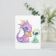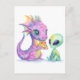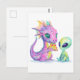 Cute Purple Dragon Baby Eating Pizza With Alien Postcard