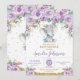 Cute Purple Floral Elephant Baby Shower Baby Girl Invitation