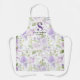 Elegant baking all-over printed apron featuring a pretty purple watercolor floral pattern, your initial, name, and a quote.