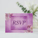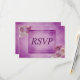 A cute purple RSVP invitation. This purple flower themed wedding response card is appropriate for weddings of all seasons. Featuring a purple background there is a purple flower, "RSVP" is written at the top in lovely purple font. The back continues with important information on a purple background. Personalise yours today!