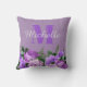 Cute and girly purple vintage floral and silver glitter custom decorator pillow. Personalised with your monogram/initial and your first name in an elegant script font.