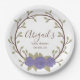 Cute Purple Floral Wreath Baby Shower Paper Plate