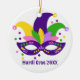 Cute Purple Green Gold Mardi Gras Mask Ceramic Tree Decoration