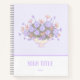 A cute notebook with purple hand-drawn flowers loosely coloured with pastel colours for school girls.