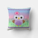 Add a festive flair with a splash of colour to your kid's room with this cute decorative pillow. Featuring a cartoon cute purple little owl birdwith a pink and purple flower on its head, on a green pink blue gradient background , this gorgeous pillow is both functional and visually appealing, adding a dose of warmth and enchantment to any cute nursery or child's room.