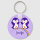 Cute Purple Penguin Monogram Rainbow Kids Key Ring