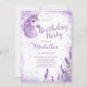 Cute Purple rainbow Glitter Floral Unicorn Birthday Invitation