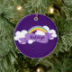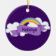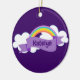 Beautiful purple Christmas ornament which features a cute cheerful rainbow with fun white clouds on a pretty violet background. Customize with a name for a great LGBT gift.