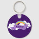 Beautiful purple keychain which features a cute cheerful rainbow with fun white clouds on a pretty violet background. Customise with a name for a great LGBT gift.
