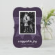 Cute Purple Ribbon Gift Wrapped in Joy Photo Holiday Card