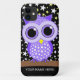 Cute purple spotted owl custom iPhone 4/4S Case-Mate cases and gifts for owl lovers, bird lovers and birders. Owl with starry night background. Unique, colourful and cool owl gifts for birthdays, Christmas or any occasion. This owl design is available in several different colours! You can personalise the phone cases by adding your name.