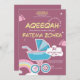 🍼 Cute Purple Stroller Baby Girl Muslim Aqeeqah Invitation 💜